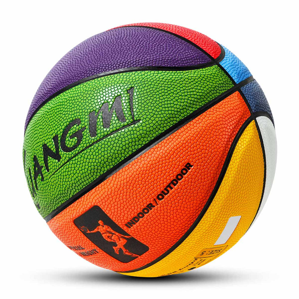 The Kuangmi Colorful Basketball comes in sizes 3, 4, 5, 6, and 7. Its surface is a vibrant blend of multiple colors, making it a visual standout. Engineered for both indoor and outdoor play, it offers great grip and bounce, ensuring an enjoyable and dynamic basketball experience for players of all levels.