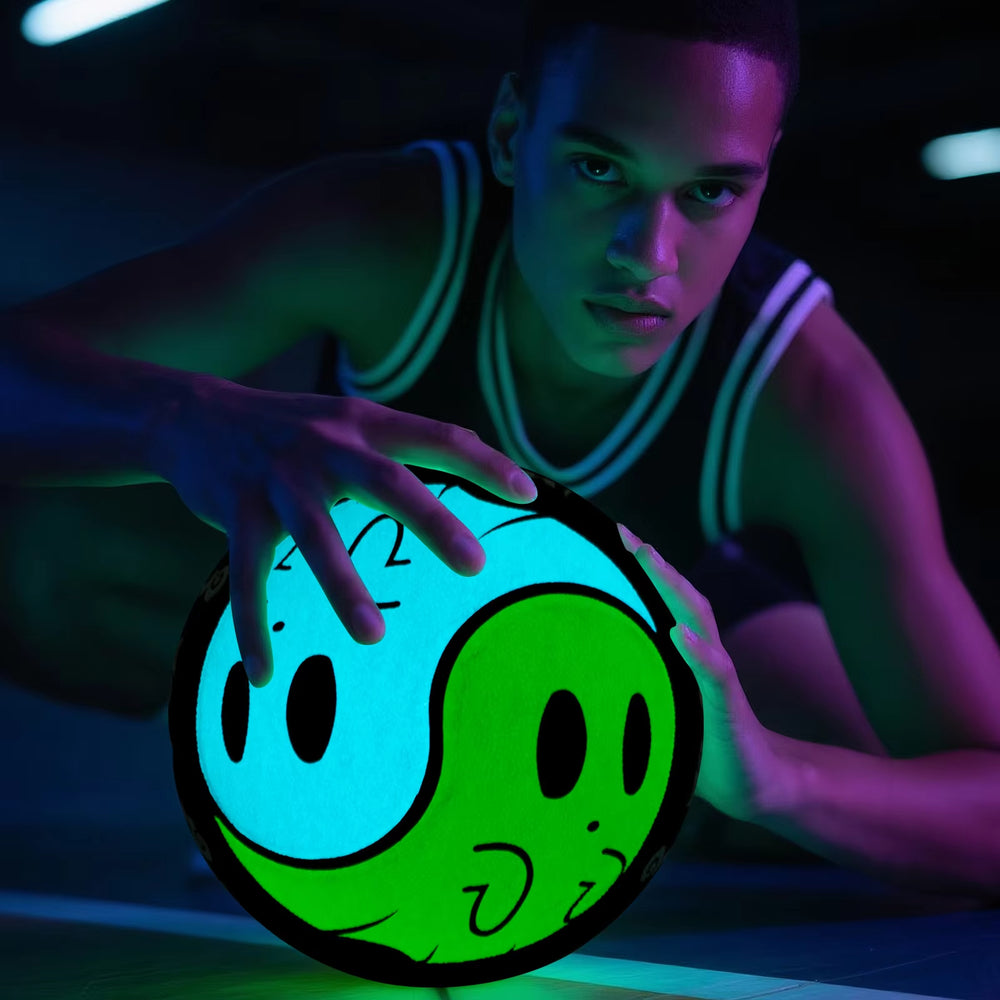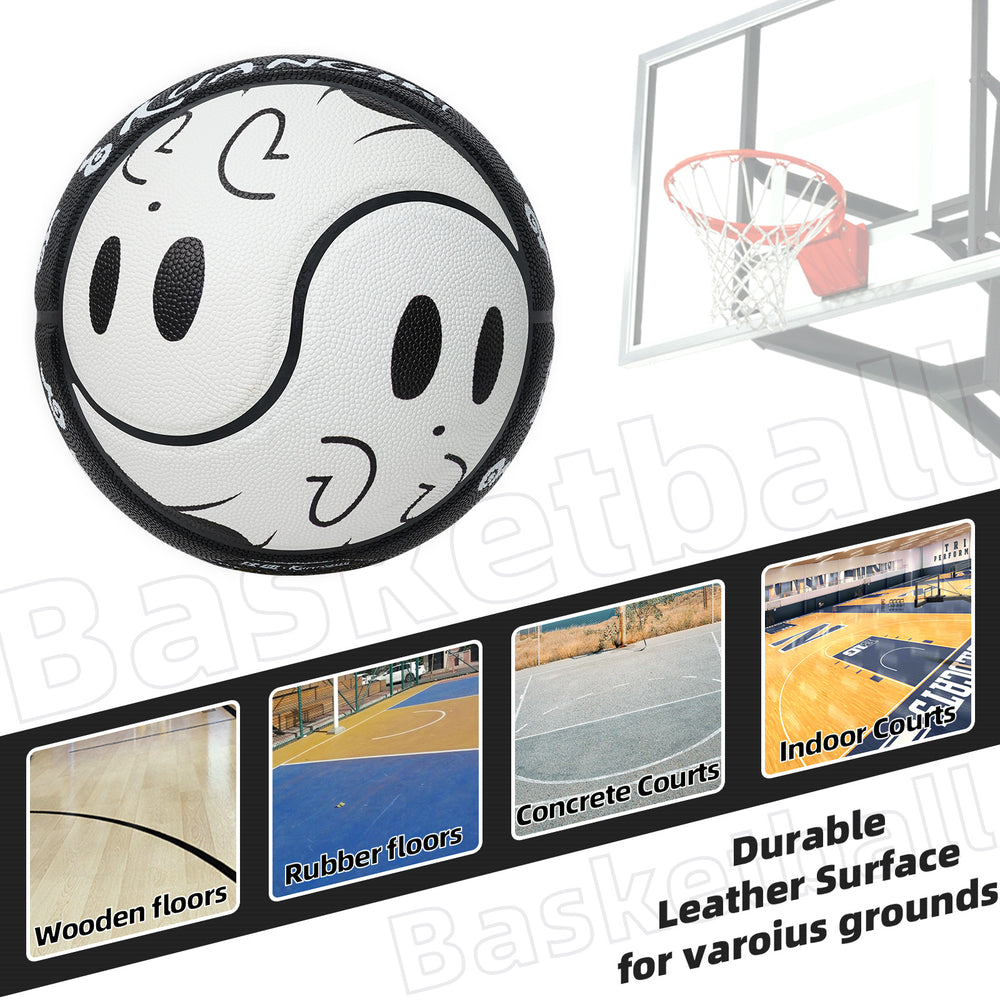 A bola de basquetebol Kuangmi Tamanho 7 combina um design de fantasma assustador com padrões inspirados no Tai Chi. Durante o dia, a sua combinação de cores preto e branco + motivos de Tai Chi semelhantes a nuvens cria um visual único e elegante. À noite, brilha em azul e verde brilhantes, com luminescência em forma de fantasma. Feita de materiais de alta qualidade, oferece ótima aderência e durabilidade. Perfeita para adicionar mistério, diversão e um toque cultural aos seus jogos — seja em lançamentos diurnos ou em jogos noturnos. Um destaque para os amantes do basquetebol que procuram equipamento distinto!