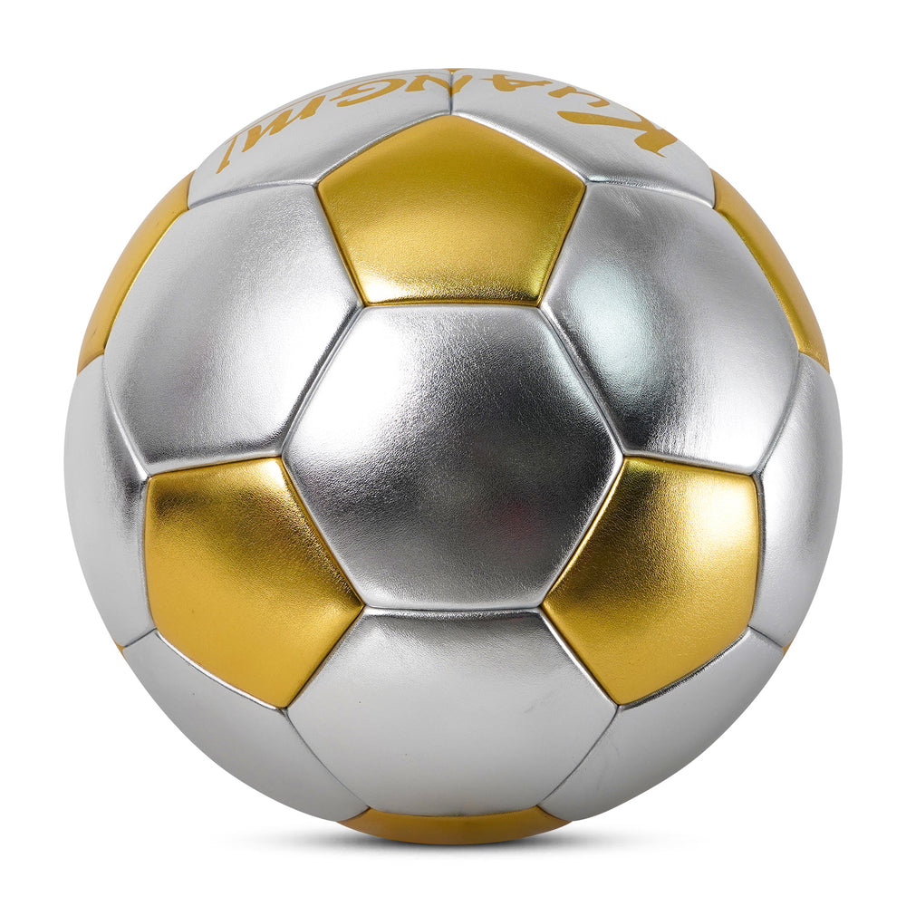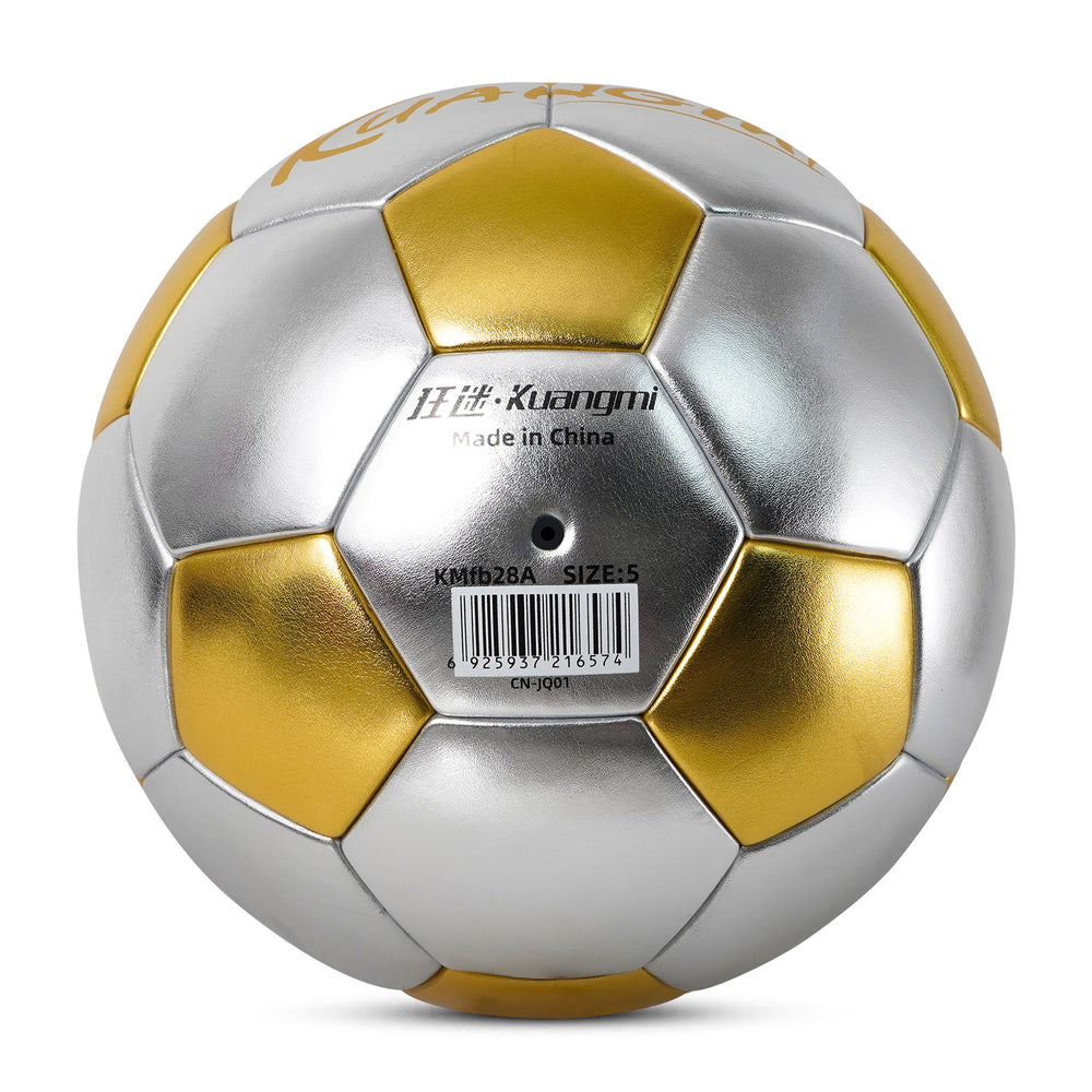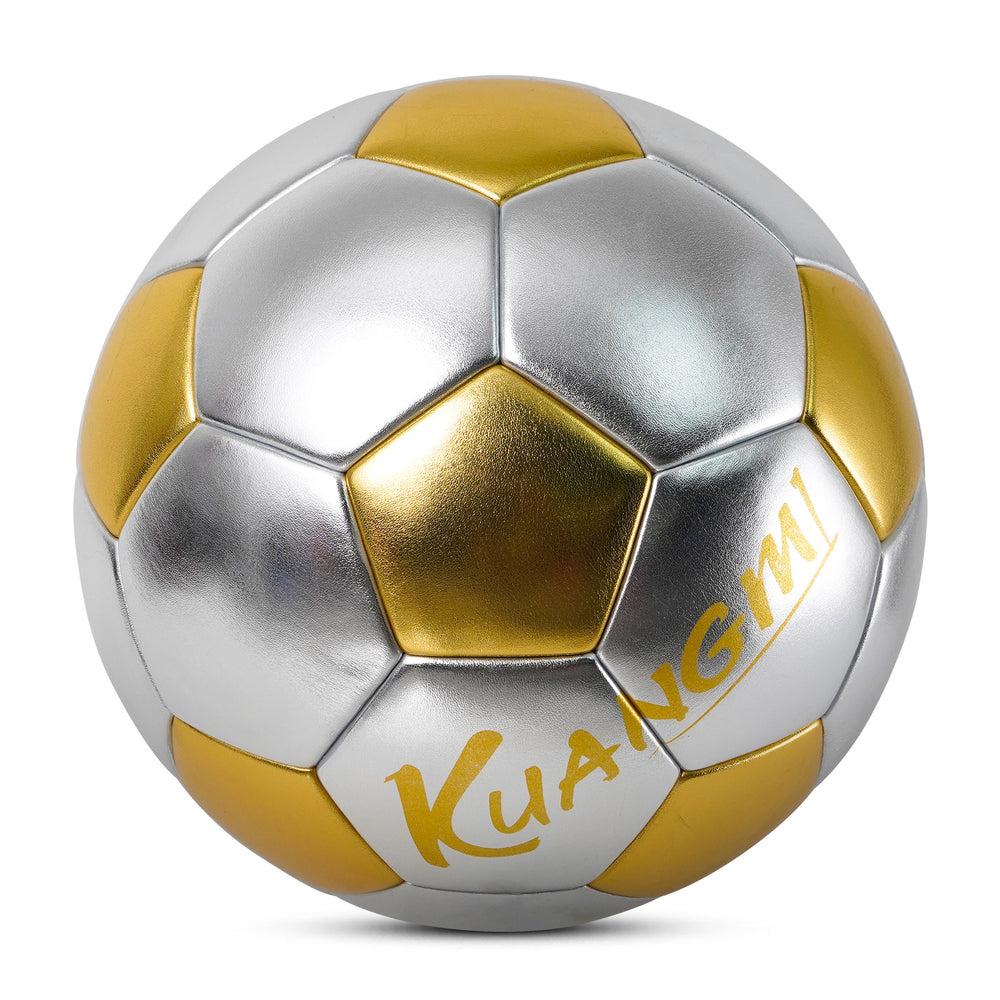 Eleve o seu jogo com a Bola de Futebol Kuangmi Honor Silver - Gold, uma obra-prima de Tamanho 5. Os seus painéis prateados e dourados criam um visual régio e atraente, perfeito para aqueles que querem destacar-se no campo. O ousado logótipo “Kuangmi” em dourado acrescenta um toque de orgulho da marca. Criada para desempenho, esta bola oferece excelente durabilidade e uma sensação responsiva, garantindo passes precisos e remates poderosos.