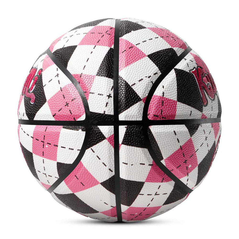 A Basketball temática Kuangmi Love nos tamanhos 6 e 7 apresenta um design elegante. A sua superfície está adornada com padrões em forma de diamante nas cores preto, branco e rosa. A parte superior da bola apresenta o ousado logótipo vermelho "KuangMi", enquanto a parte inferior tem um símbolo em forma de coração com a palavra "amor" dentro. Ideal tanto para jogos casuais como para jogos intensos, combina estilo e funcionalidade em campo.